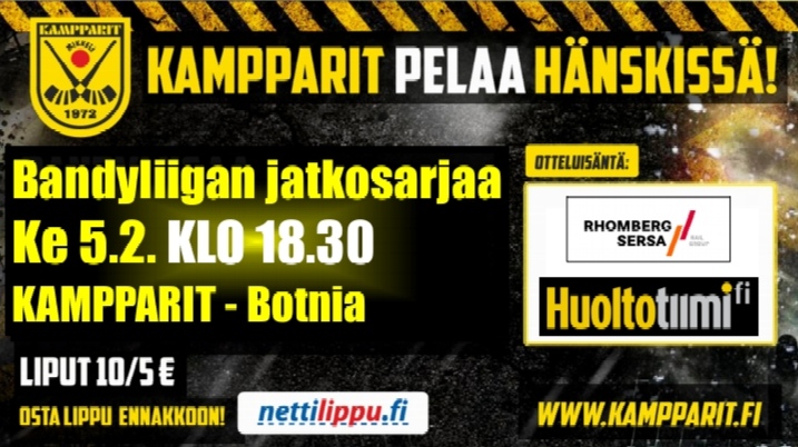 Kampparit ja Botnia kohtaavat uudelleen keskiviikkona 5. helmikuuta Mikkelissä Hänskissä.