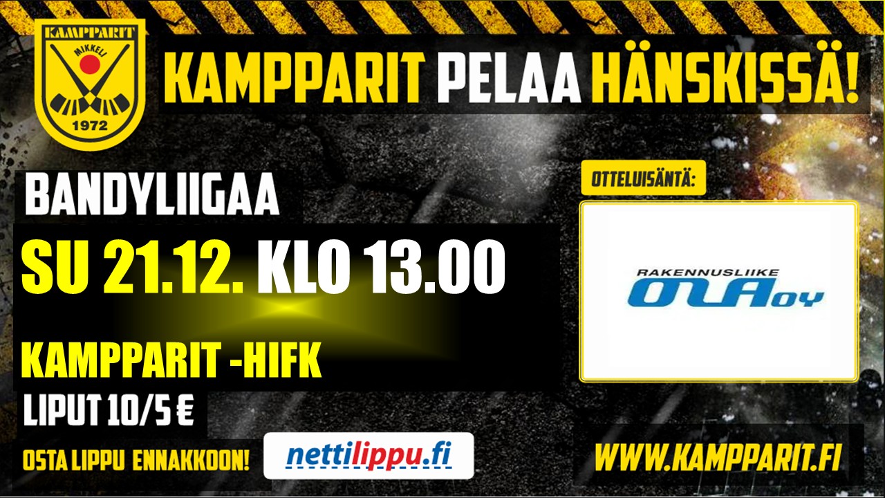 Kamppareiden pelit jatkuvat tulevana keskiviikkona: Kampparit – WP35 10.12. kello 18.30 – Tervetuloa Hänskiin!