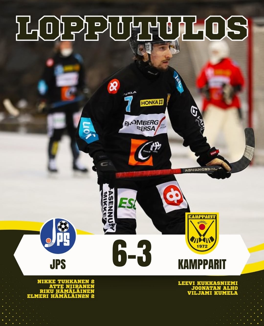 JPS voitti pakkasillan ottelun maalein 6-3 (3-2). Joukkueiden ensimmäisessä kohtaamisessa juuri ennen vuodenvaihdetta Kampparit voitti selkein numeroin, mutta nyt kun panoksena oli ylemmän jatkosarjan paikka, JPS piti kotikenttänsä.