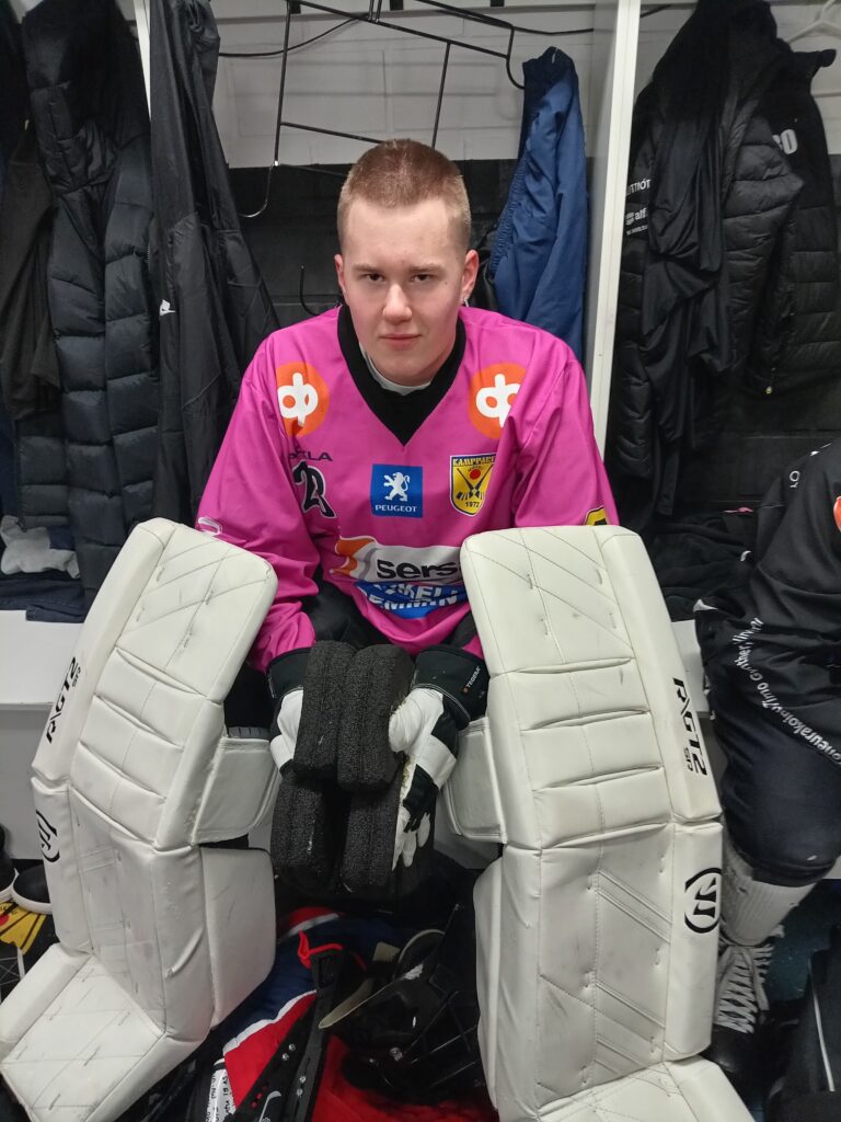 Molempien joukkueiden maalivahdit, WP:n Kasper Tolvanen ja Kamppareiden Elmo Huovinen pelasivat hyvän pelin. Kuvassa Elmo.