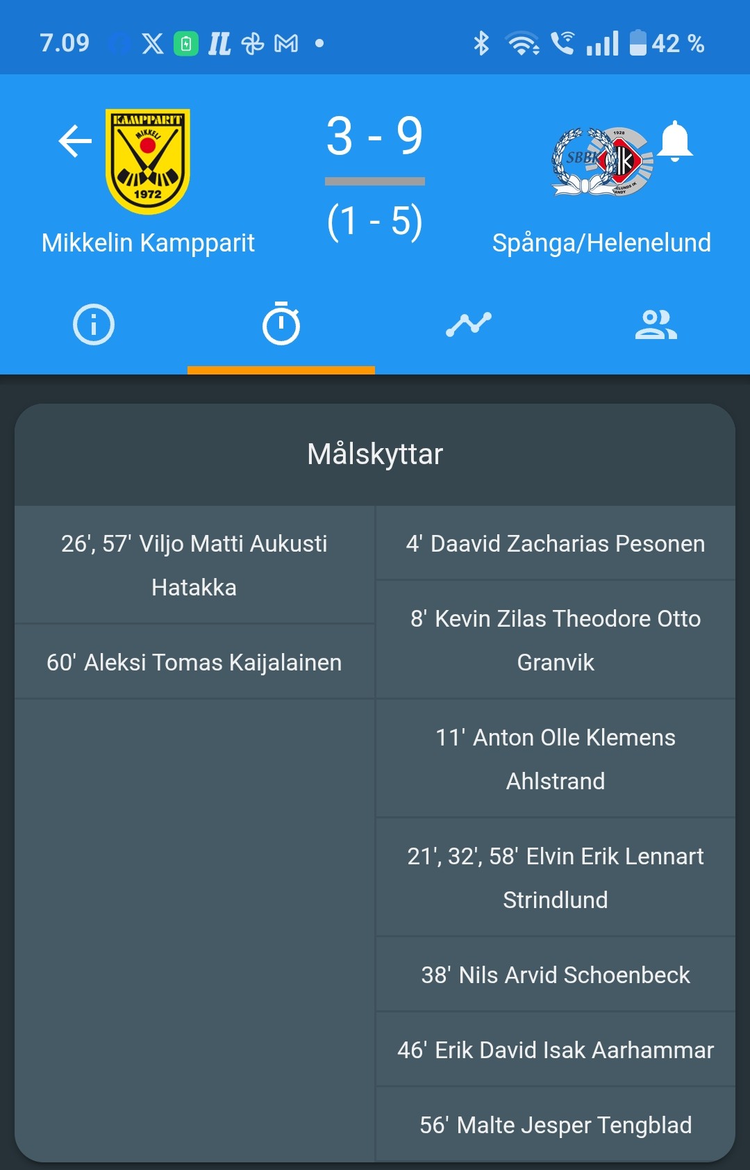 - Lauantain ensimmäisessä pelissä (Spånga/Helenelund) menetettiin valitettavasti pari pelaajaa kokoonpanosta kolhujen myötä ja tasokkaan vastustajan vauhdissa jalat ei vaan riittäneet. Hyvä kamppailu kuitenkin ja paljon hyviä onnistumisia.