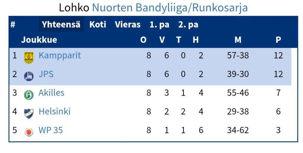 Kampparit kaatoi Nuorten Bandyliigan päätöskierroksen kärkikamppailussa JPS:n ja varmisti paikan kotifinaaliin!